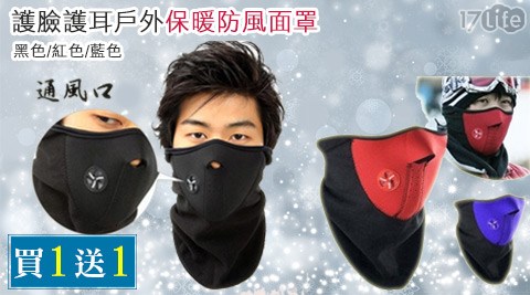 只要118元(含運)即可享有原價399元護臉護耳戶外保暖防風面罩1入,顏色:黑色/紅色/藍色,享買1送1優惠?